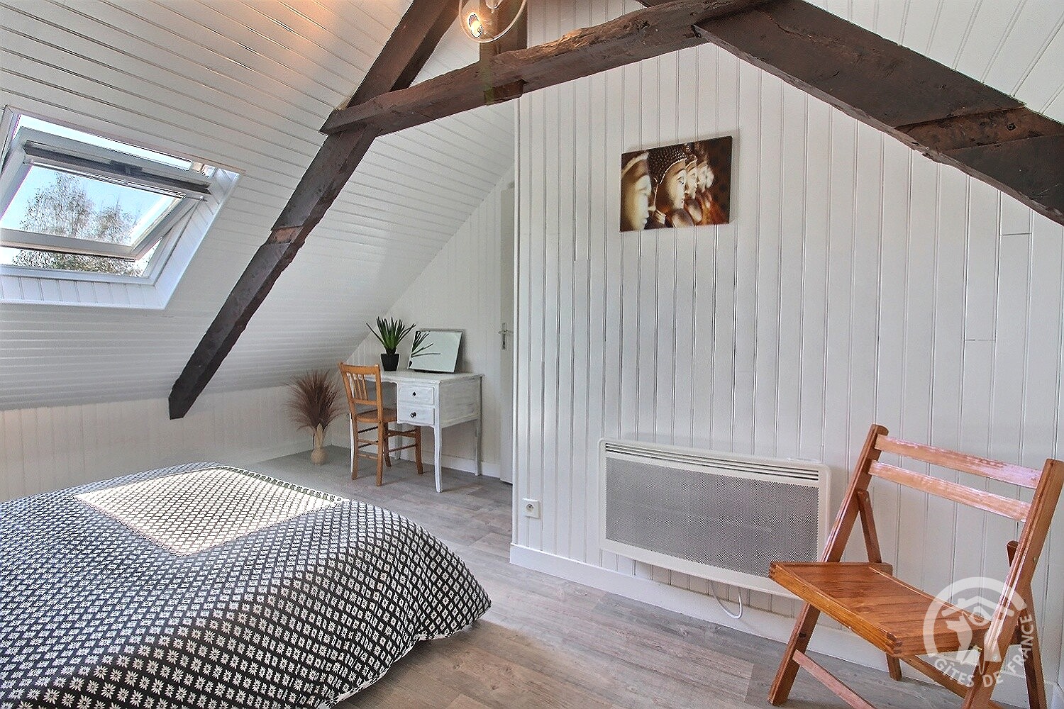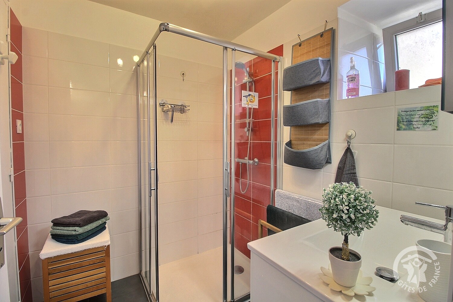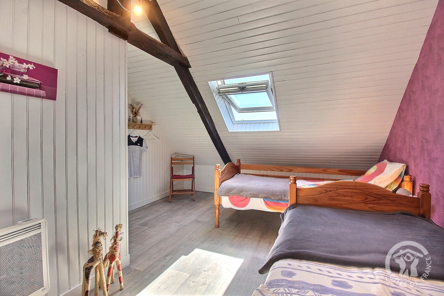 Avec une capacité d’accueil de 4 personnes, notre gîte se répartit sur deux niveaux pour votre plus grand confort. Au rez-de-chaussée, vous trouverez la véranda, le séjour équipé d’un canapé-lit, un coin cuisine entièrement équipé, une salle d’eau ainsi qu’un WC privatif. À l’étage, deux chambres accueillantes vous attendent : l’une est équipée d’un grand lit, tandis que l’autre propose deux lits individuels de 90 cm et un WC privatif.